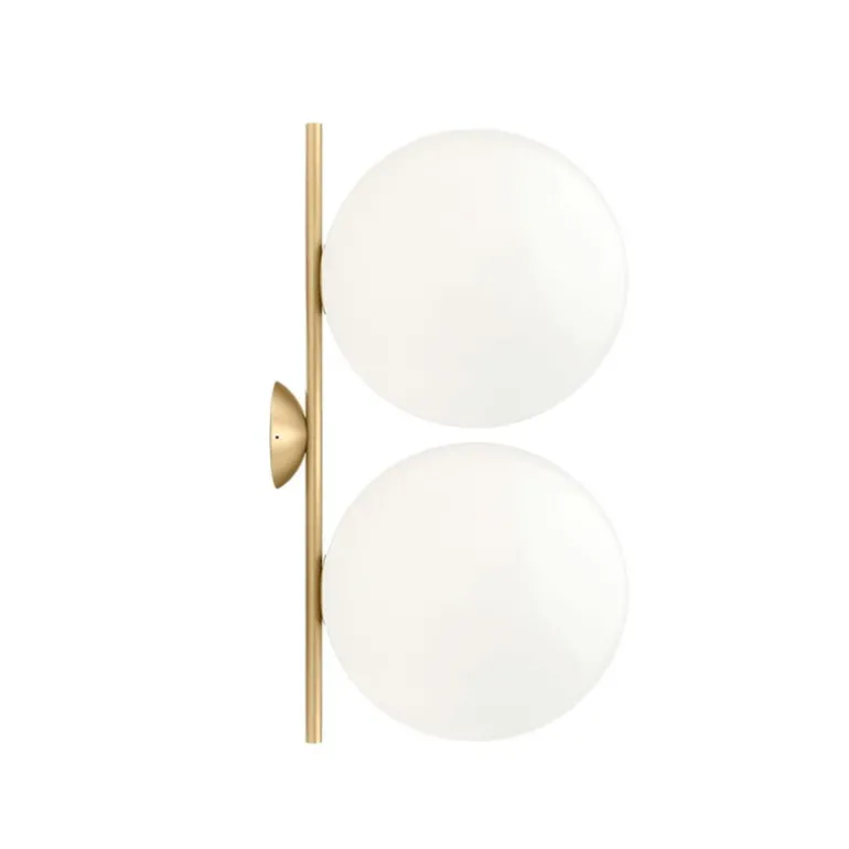 Vägg- och taklampan IC C/W2 Double, från det italienska märket Flos, är en del av IC-kollektionen som designades 2014 av Michael Anastassiades. Lampan karaktäriseras av en kombination av industriell enkelhet och elegant symbolism. Den består av en vinklad metallram med ett varmt mässingssken, samt två klot i vitt opalglas som ger ett rent, mjukt ljus.