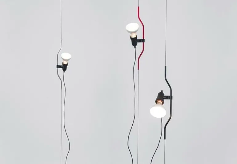 Parentesi, som designades 1971 av Achille Castiglioni och Pio Manzù för det italienska märket Flos, är ett exceptionellt stycke ljusdesign – det är både en golvlampa och en taklampa på samma gång. Parentesi fästs mellan tak och golv med en stålkabel, och ansluts till elnätet som en vanlig golvlampa. Höjden och riktningen på lamphuvudet kan justeras för att enkelt passa alla slags utrymmen, såväl hem som offentliga miljöer. Med sin industriella och funktionella konstruktion är Parentesi en klassiker inom italiensk design, och den har mottagit det prestigefyllda designpriset Compasso d’Oro.