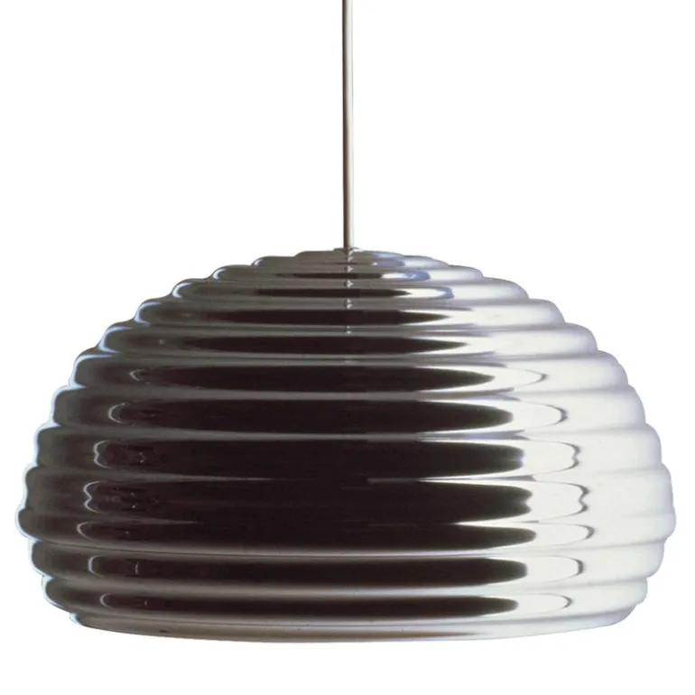 Pendellampan Splügen Bräu från det italienska märket Flos formgavs ursprungligen 1961 av Achille och Pier Giacomo Castiglioni för restaurangen Splügen Bräu i Milano. Pendelns vågiga, dynamiska form påminner om en stor bikupa, och ytskiktet i polerad aluminium reflekterar omgivningens färger och ljus. Splügen Bräu ger ett direkt ljussken nedåt utan att blända, och den stilrena designen passar perfekt ovanför en soffgrupp eller ett matbord, antingen individuellt eller i en samling av flera pendellampor.