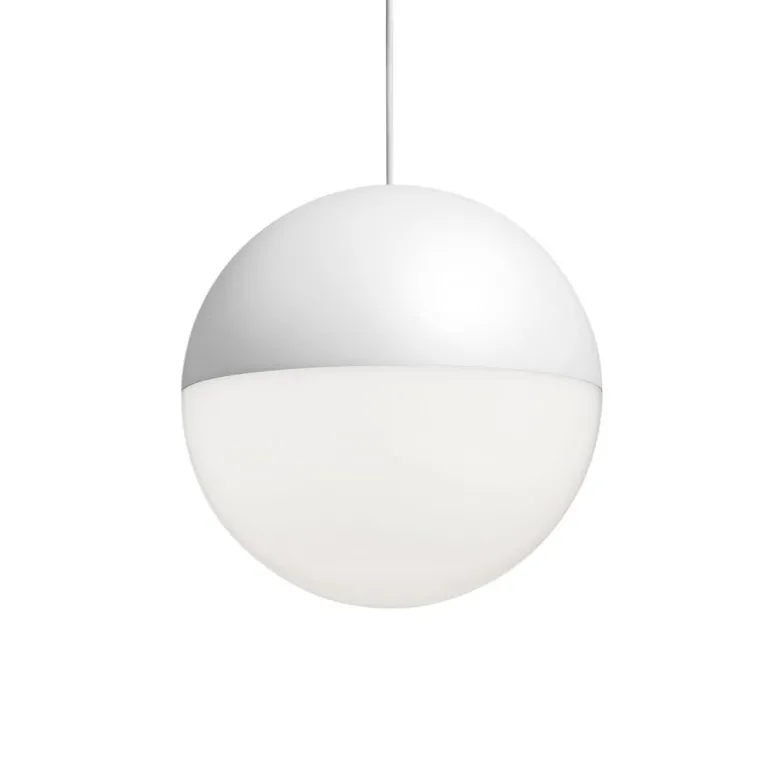String Light Sphere Head lampa, designad av Michael Anastassiades för italienska Flos, har en särskild charm som i slutändan ligger i den extra långa kabeln. Takfästet säljs separat; alternativt finns också en basströmförsörjning med golvbrytare tillgänglig.