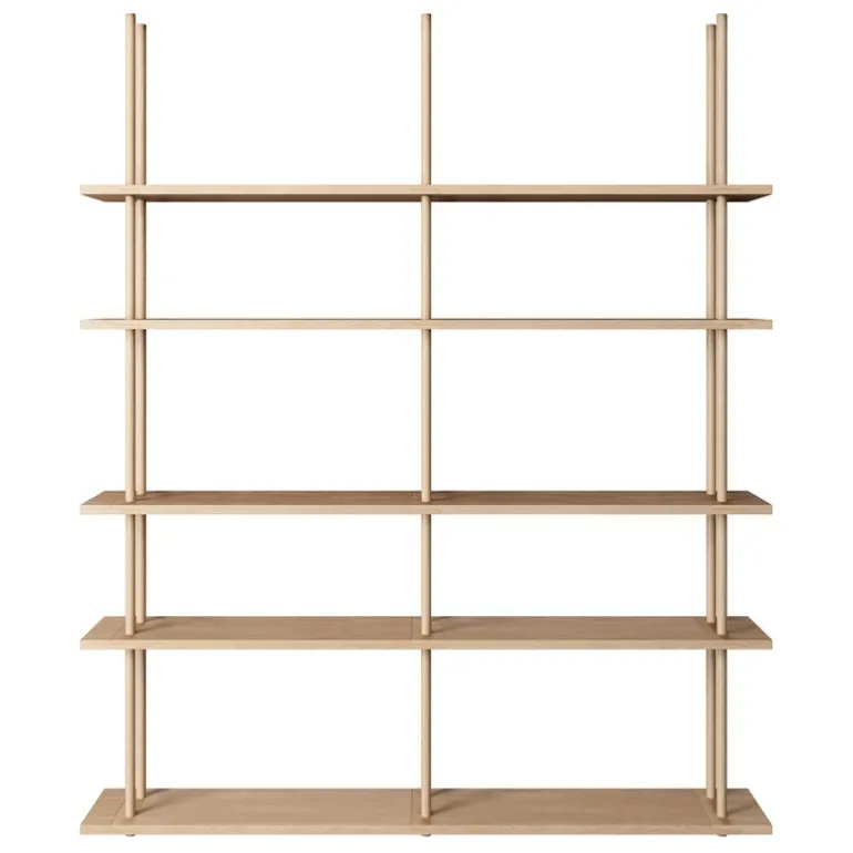 Fogia Bond hylla ser ganska klassisk och enkel ut, men dess kärna ligger i hyllans flexibilitet och anpassningsförmåga: hyllan är lätt att montera helt utan verktyg, och den kan stå fritt eller fästas i golvet eller till och med i taket.