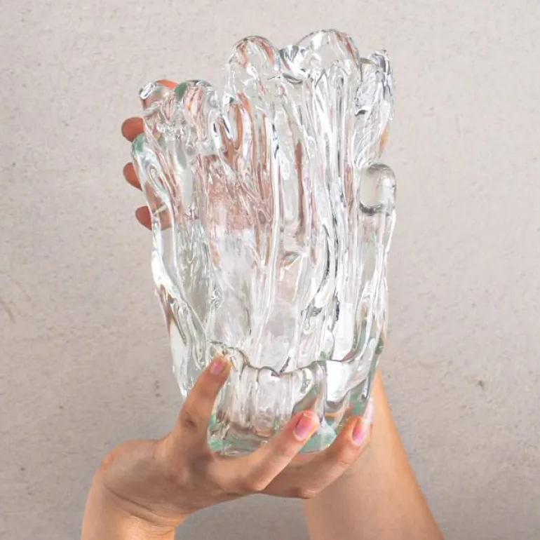 FÓLK Reykjavíks vas Lava är inte bara fascinerande vacker, den är även tillverkad på ett hållbart sätt – 100 % återvunnet glas används i produktionen av denna enastående vas. Det är inte så förvånande att det svenska designkollektivet NAVET, som skapade den underbara glasvasen, specialiserar sig på att använda överblivna material från tillverkningsprocessen.