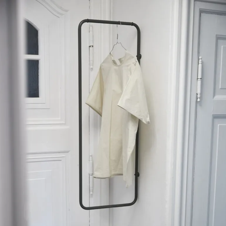 Den minimalistiska klädhängaren Turnaround från Fólk Reykjavik är ett idealiskt val för små utrymmen, eftersom den kan vinklas in plant mot väggen. Den enkla, rektangulära stålrörsramen är lätt, okrossbar och lätt att installera med endast två skruvar. Placera hängaren Turnaround i hallen, badrummet eller bakom sovrumsdörren – eller skapa en hel bok med kläder genom att använda flera hängare.