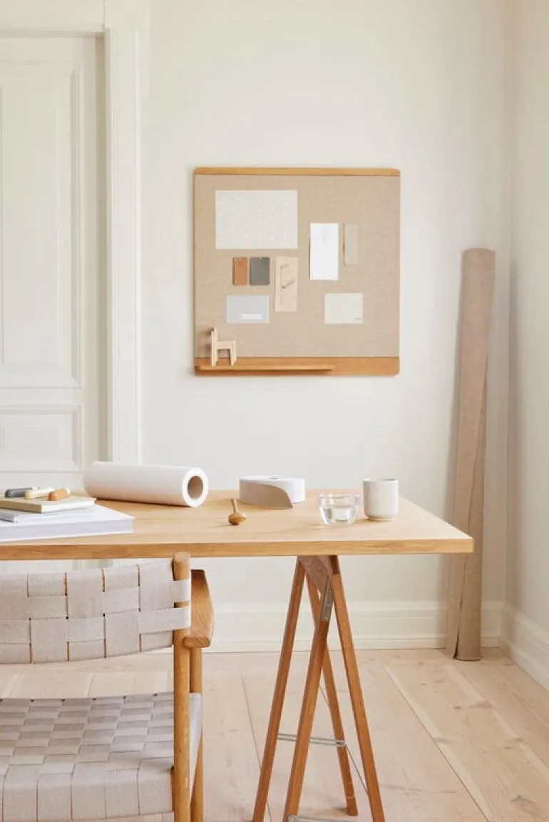 Form & Refines anslagstavla Rim är designad för att se ut som om den svävar lite från väggen. Designad av Herman Studio, har anslagstavlan ett rent, minimalistiskt uttryck som mjukas upp av kombinationen av trä och bomullsduk, vars naturlighet ger lugn och mildhet till utrymmet. Den klassiska, eleganta minnestavlan är utrustad med en liten hylla för tillbehör och små föremål – spåret på framsidan av hyllan håller föremålen säkert på plats.