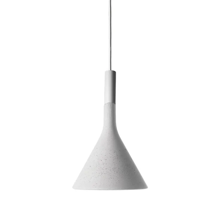 Pendellampan Aplomb Mini från det italienska varumärket Foscarini har en distinkt lampskärm i betong som ger lampan en unik karaktär och en levande, opolerad känsla. Även om betong är ett vanligt material inom modern arkitektur har det inte använts mycket inom belysningsdesign. Lampan Aplomb Mini, som formgivits av den italienska studion Lucidi & Pevere, ger rummet en stilren, industriell touch, medan den lilla konformade skärmen gör lampan visuellt tilltalande både som fristående pjäs och arrangerad i större grupper.