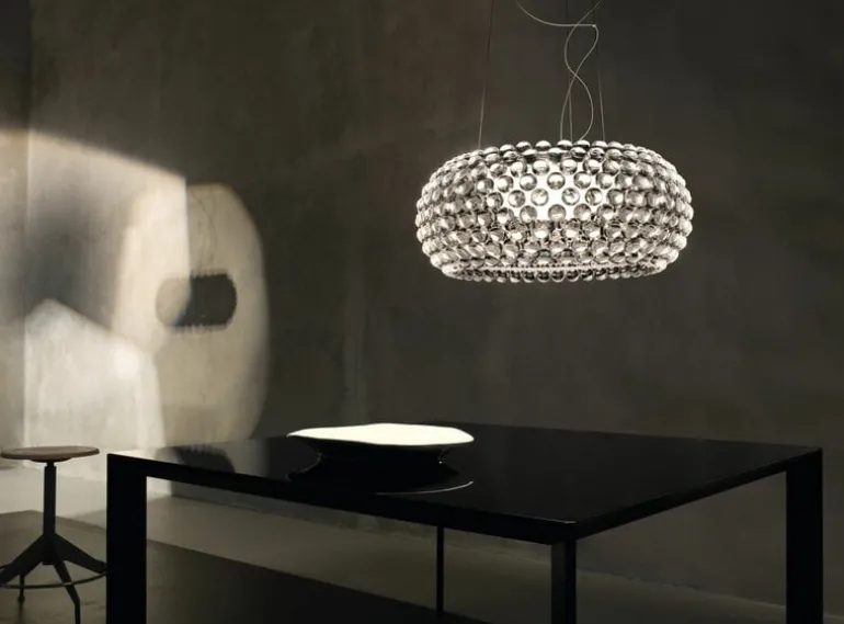 Den fantastiskt fina pendellampan Caboche från Foscarini designades av Patricia Urquiola och Eliana Gerotto. Caboche-lampans skärm består av små, transparenta kulor som skapar ett diffust ljust som får den lyxiga lampan att glänsa som en diamant. Caboche är som en modern kristallkrona som fångar ögat och blir det som toppar inredningen.