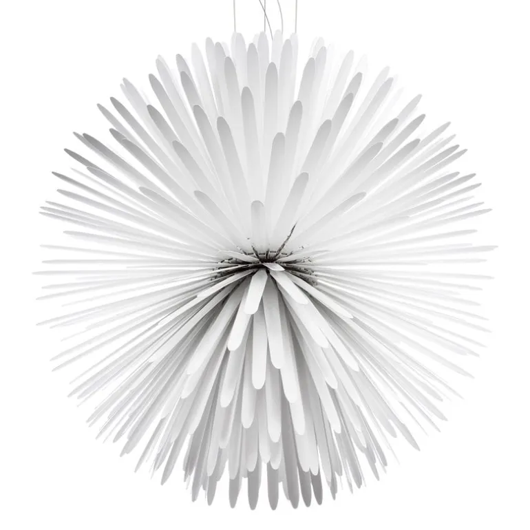 Sun – Light of Love är en iögonfallande pendellampa som designats av Tord Boontje och tillverkats av det italienska belysningsmärket Foscarini. Som namnet antyder inspirerades Sun – Light of Love av solens kraft: dess fasta LED-enhet omges av en sfär av tunna metallremsor som låter ljuset flöda igenom den på ett häpnadsväckande och samtidigt poetiskt sätt. Den stora, djärva lampan kommer att se fantastisk ut, till exempel ovanför matbordet eller i vardagsrummet.
