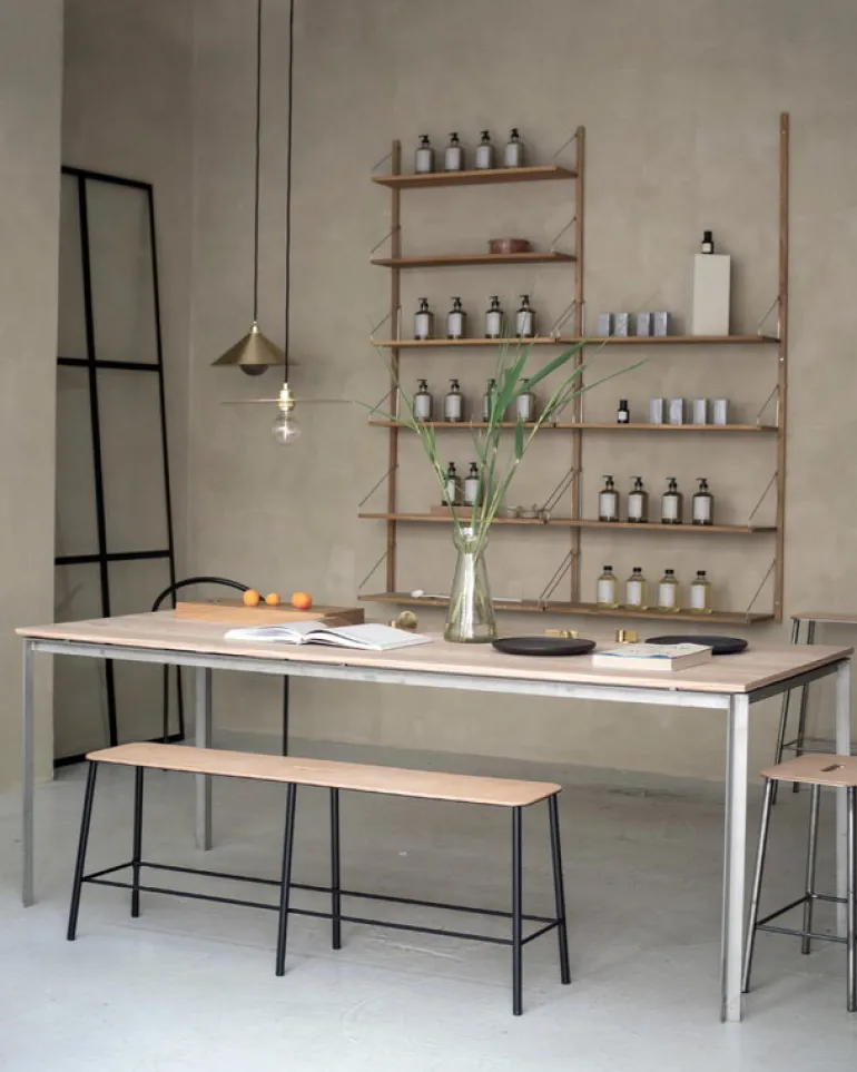 Framas bänk Adam har en enkel och funktionell form som inspirerats av industridesign, verkstäder och konstnärsateljéer. Den minimalistiska stålramen tillverkas lokalt av en smed i Köpenhamn, medan sitsen av massiv ek har behandlats med olja. Bänken är lätt att flytta runt eftersom den har ett praktiskt handtag. Med sin minimalistiska form lämpar sig Adam för olika användningsområden och utrymmen, från köket till kontoret.