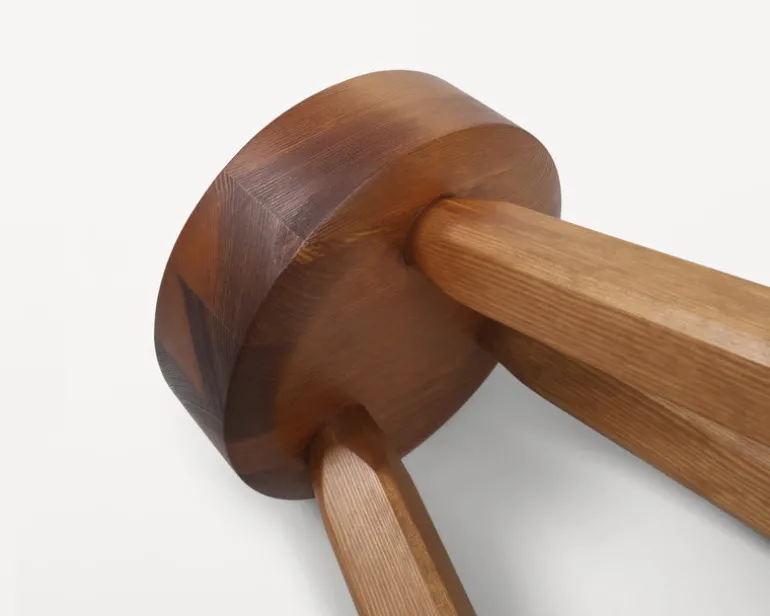 Framas AML-pall som designades av Andreas Martin-Löf är en pall med flera funktioner, den kan även användas som ett nattduksbord eller ett litet sidobord. Pallen, som består av ett kraftigt säte och tre rejäla ben, har en distinkt vintagekänsla som skapats av det skrymmande utseendet och de naturliga kornen från furuträet.