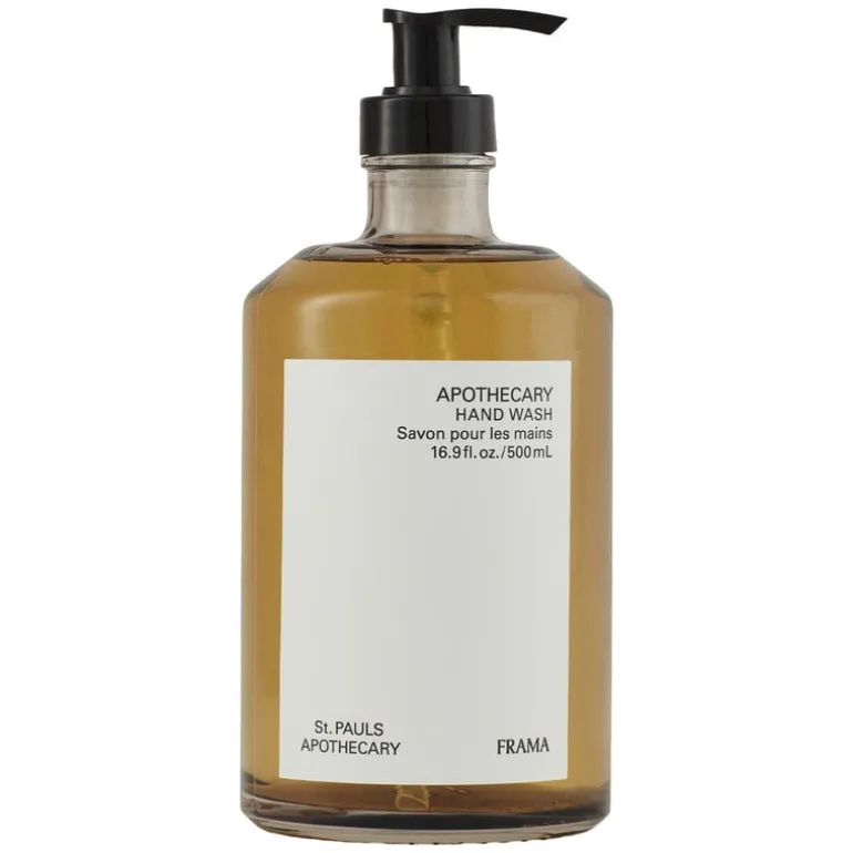 Framas Apotekarhandtvätt rengör händerna skonsamt men effektivt och lämnar dem mjuka med en behaglig, lätt doft. Handtvätten är doftsatt med Apotekarens signaturdoft av sandelträ, ceder och ylang-ylang, och kommer i en återanvändbar glasflaska, som kan kombineras med Apotekarens väggdisplay. Producerad i Danmark.