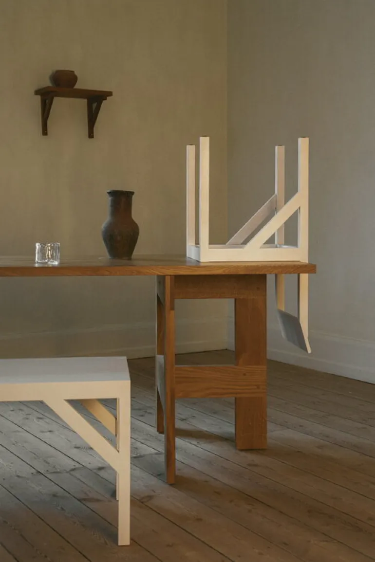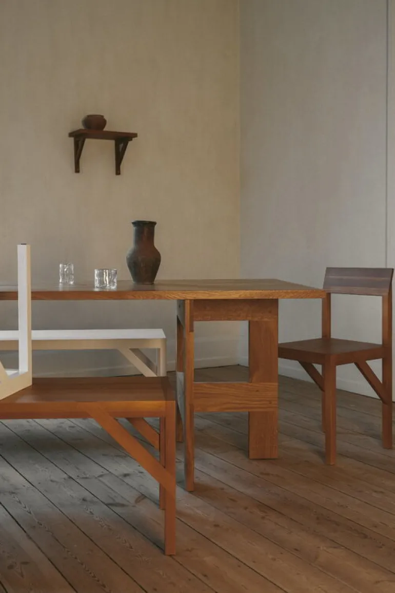 Hyllan Bracket från Frama är en elegant vägghylla i trä som inte räds att bryta mot den klassiska formen genom att ta med oväntade inslag. Furuhyllan ger ett charmigt intryck med sina små detaljer: de triangelformade öppningarna i konsolerna ger hyllan ett lekfullt drag som för övrigt har ett traditionellt utförande. Bracket-kollektionen, som är framtagen i samarbete med designstudion Frederik Gustav, har hämtat inspiration från traditionellt träsnickeri, vilket lyfter fram naturmaterialets unika skönhet.