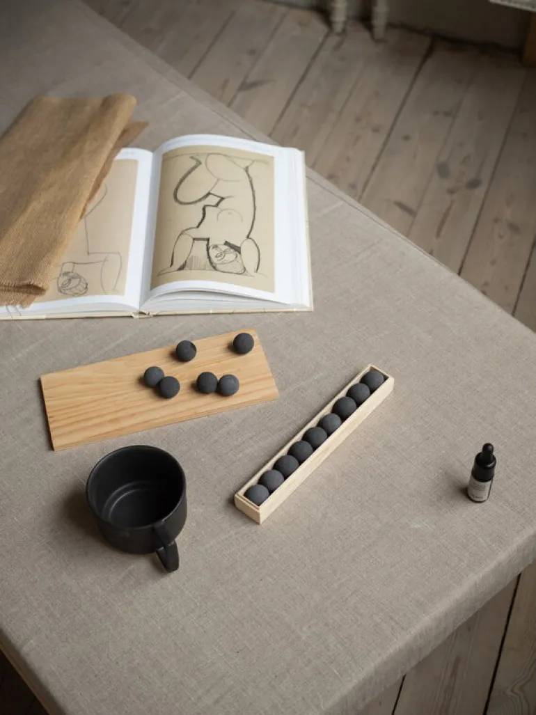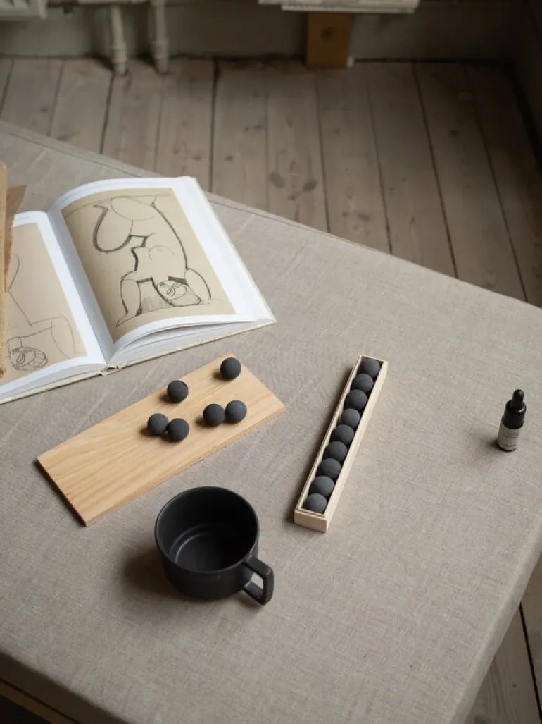 Framas diffuser From Soil To Form är en ljuvlig kombination av minimalistisk elegans och en fängslande upplevelse för alla sinnen. Diffusern är tillverkad i samarbete med den Seoul-baserade kreativa studion Be My Guest och består av en smal furulåda som döljer en överraskning under locket: inuti trälådan finns nio rundade bollar gjorda av jord och träkol, som sprider sin harmoniska doft i det omgivande utrymmet. Du kan använda bollarna individuellt genom att sprida dem i olika rum i ditt hem, eller hålla dem inbäddade i lådan för att njuta av en mer potent doft.