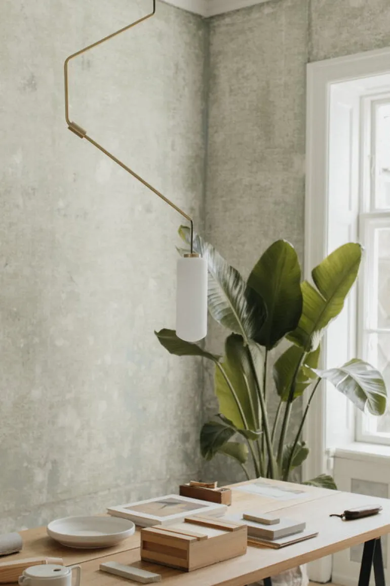 Frama’s hänglampa Ventus fångar blicken med sin arkitektoniska form, skapad av den danska designduon Included Middle. Hänglampan består av en skulpturalt böjd upphängningstube och en cylindrisk skärm i opalglas som filtrerar ljuset mjukt och behagligt, vilket skapar en varm och inbjudande atmosfär i rummet.
