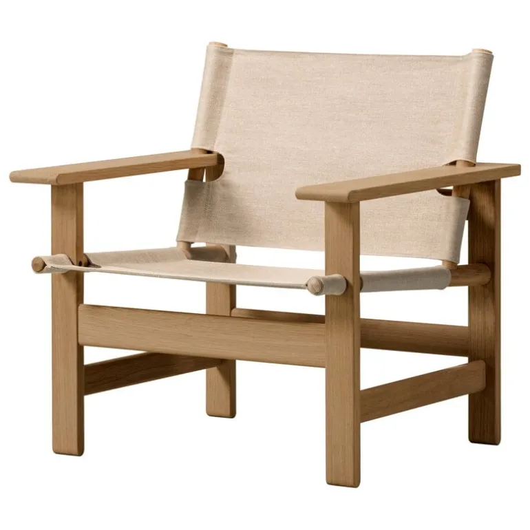 Fredericias Canvas från 1970 är en av den legendariske danske formgivaren Børge Mogensens sista designer. Han skapade den minimalistiska stolen som en protest mot färgglada plastmöbler i ett försök att återigen fylla människors hem med harmoni och en naturlig känsla, med hjälp av enkla former och högkvalitativa material.