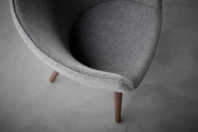 Fredericia Ditzel fåtölj, light grey – lackerad valnöt
