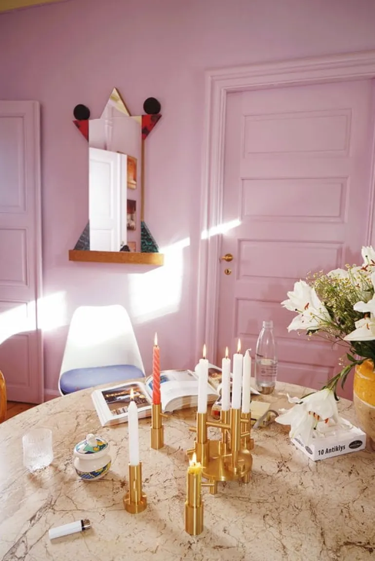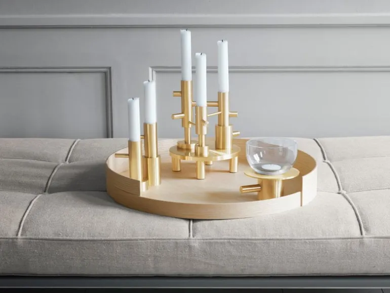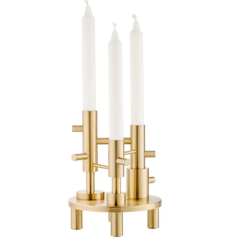 Jaime Hayóns ljushållare, designade för Fritz Hansen, lämnar utrymme för din egna tolkning av designen. Ljushållarna i kollektionen kan ses som skulpturala, vackra och minimalistiska designobjekt som charmar genom sina simpla former i elegant mässing. Dock, i sann anda av designerns signaturstil, kan du även använda de som vimsiga karaktärer med spetsiga näsor! Ljushållarna ser vackra ut som dem är, men du kan även skapa olika kombinationer, eller familjer, om du så önskar, genom att placera flera stycken sida vid sida. Kandelabern har plats för tre ljus.