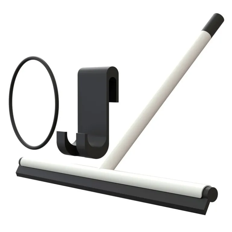 Nova2-duschskrapan från Frost tillför en touch av modern dansk funktionalism i badrummet. Skrapan medföljs av en gummikrok och ett band så att den kan hängas.