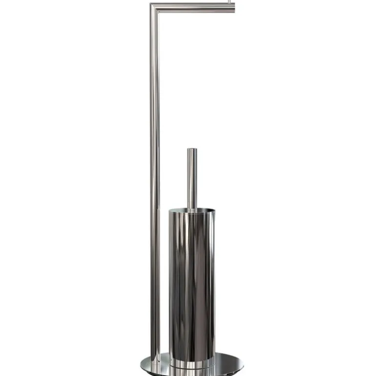 Den fristående toalettborsten Nova2 från Frost tillför en touch av modern dansk funktionalism i badrummet. Förutom toalettborsten finns också en praktisk toalettpappershållare. Ersättande borsthuvuden kan köpas separat.