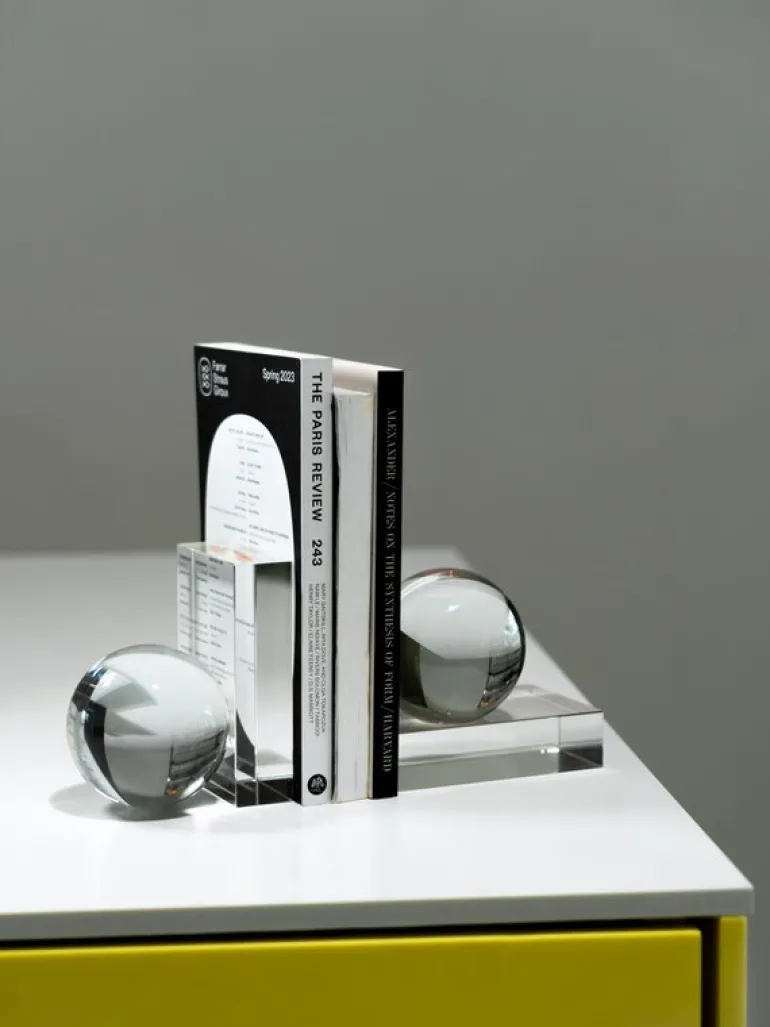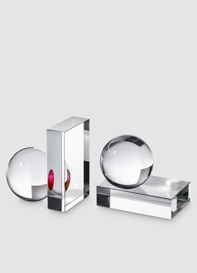 Fundamental Berlins bokstöd Drop är den bländande detalj som din bokhylla eller soffbord saknat! Bokstödet tillverkas av skickliga hantverkare som skär och polerar kristallglas för hand, och avslutas med en speciell pigmenteringsteknik som ger en färgklick där de två delarna fogats samman – tekniken har tagits fram speciellt för produkten. Låt kristallbokstödet fånga solens strålar en solig dag och låt dem leka på den släta ytan. Setet innehåller två bokstöd.