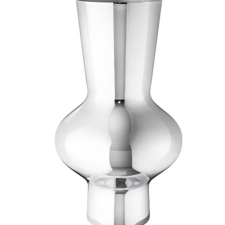 Georg Jensens glänsande Alfredo-vas är tillverkad av spegelpolerat, rostfritt stål. Vasen är formgiven av Alfredo Häberli och speglar hans mål att skapa enkla, genomtänkta designföremål för vardagsbruk. Alfredo-vasen kan användas som effektfull prydnad och som vackert kärl för blomsterarrangemang.