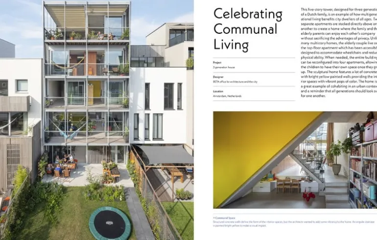 Come Together: Architecture of Multigenerational Living, utgavs av Gestalten och ger en intressant inblick i en gammal, idag mindre vanlig, form av gemensamt boende. I boken presenteras olika flergenerationshus och man studerar den moderna arkitekturens möjligheter att skapa harmoniska sätt för flera generationer att leva tillsammans med fördelar för alla. Boken har redigerats av Joann Plockova, en designjournalist som specialiserat sig på flergenerationsboende och som skriver för publikationer som New York Times, Monocle och Azure.