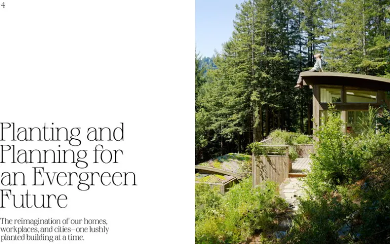 Evergreen Architecture omfamnar den allmänt förekommande trenden och visar ett brett spektrum av utrymmen för boende, institutioner samt platser i staden och på landet. Men när förändring sker och lösningar på klimatkrisen integreras på marken uppstår många nya frågor. Hur håller de boende sina mosstäckta väggar levande? Hur kan en skyskrapa hålla för vikten av hundratals träd? Evergreen Architecture undersöker rörelsen ur chefsarkitektens synvinkel och erbjuder diagram och skisser för att hjälpa dig som läsare att förstå hur varje byggnad blev till och hur den ska överleva.