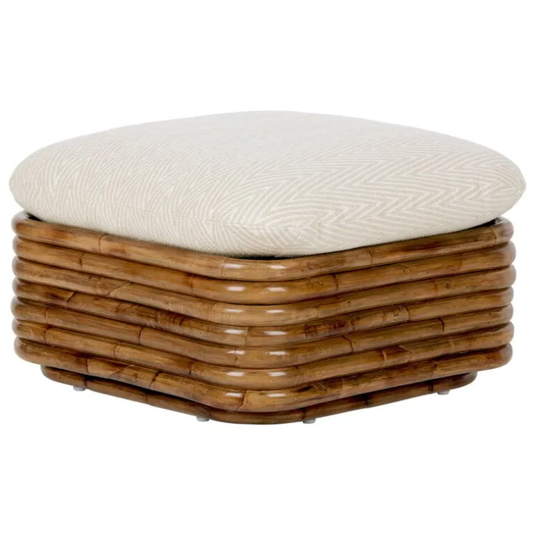 GUBI:s fotpall Bohemian är ett perfekt exempel på designer Gabriella Crespis önskan att skapa möbler som sömlöst kan flyttas från inomhus till utomhus. Fotpallen är tillverkad av rotting och klädd i Dedars högkvalitativa utomhustyg, vilket gör den lämplig för vardagsrummet såväl som för balkongen eller den täckta terrassen eller uteplatsen – även om det inte rekommenderas att lämna rottingmöbler i regn eller brännande sol.