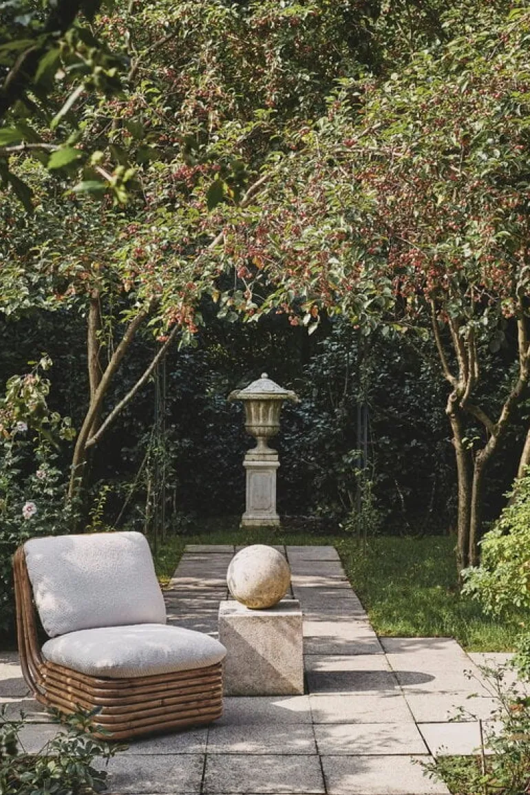 GUBI:s loungefåtölj Bohemian är ett perfekt exempel på designer Gabriella Crespis önskan att skapa möbler som sömlöst kan flyttas från inomhus till utomhus. Loungefåtöljen, som är tillverkad av rotting, passar lika bra i vardagsrummet som på balkongen eller den täckta terrassen eller uteplatsen – även om det inte rekommenderas att lämna rottingmöbler i regn eller brännande sol. Fåtöljen är klädd i Dedars högkvalitativa utomhustyg med diagonala bouclé-ränder.