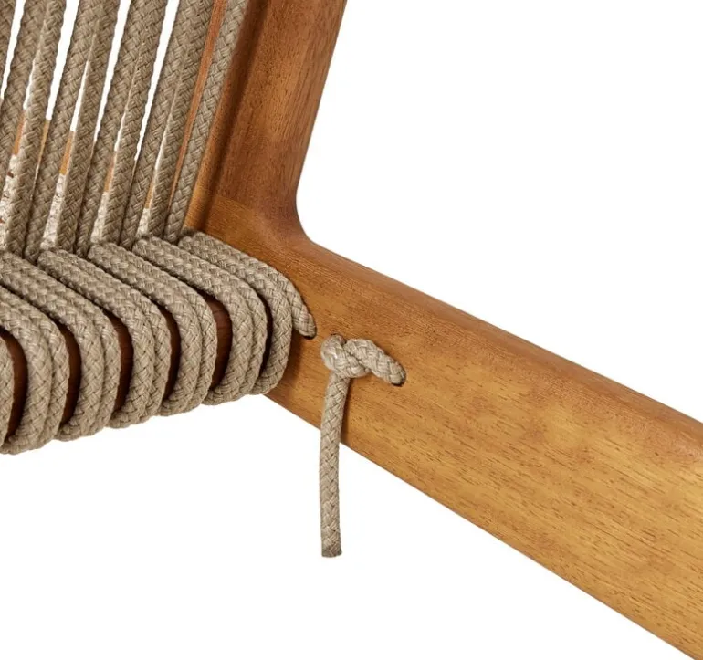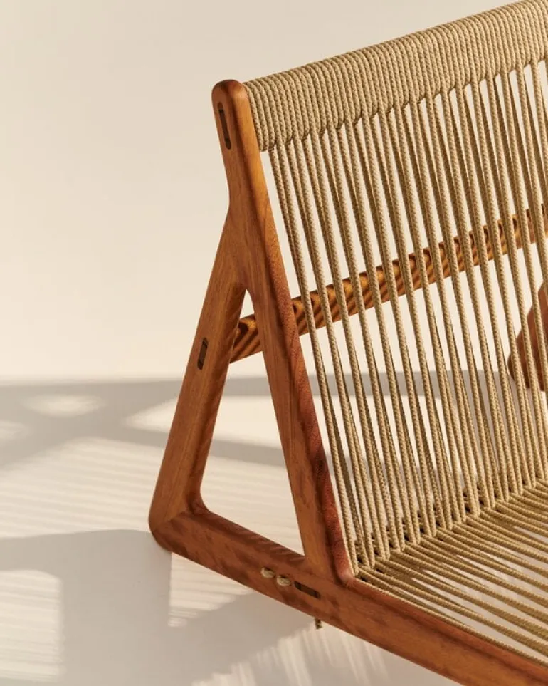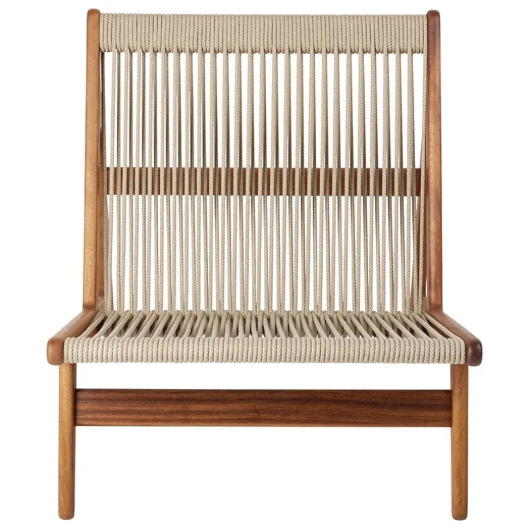 Stolen MR01 Initial Outdoor från GUBI är en utomhusversion av den ikoniska fåtöljen – formgiven av Mathias Steen Rasmussen. Den moderna MR01 Initial Outdoor andas dansk mid-century, men utförandet har även influerats av Rasmussens bakgrund inom finsnickeri. Fåtöljen har en unikt formad, lätt lutande ram i massivt trä – men det som gör stolen ännu mer unik är materialet i sitsen. Ryggstödet och sitsen är nämligen handflätade av 90 meter rep, detta med en metod som Rasmussen själv utvecklat. Synliga, skickligt utformade fogar fullbordar fåtöljens organiska charm.