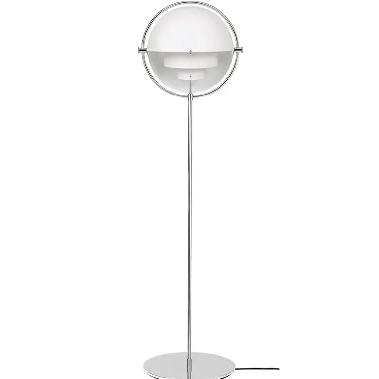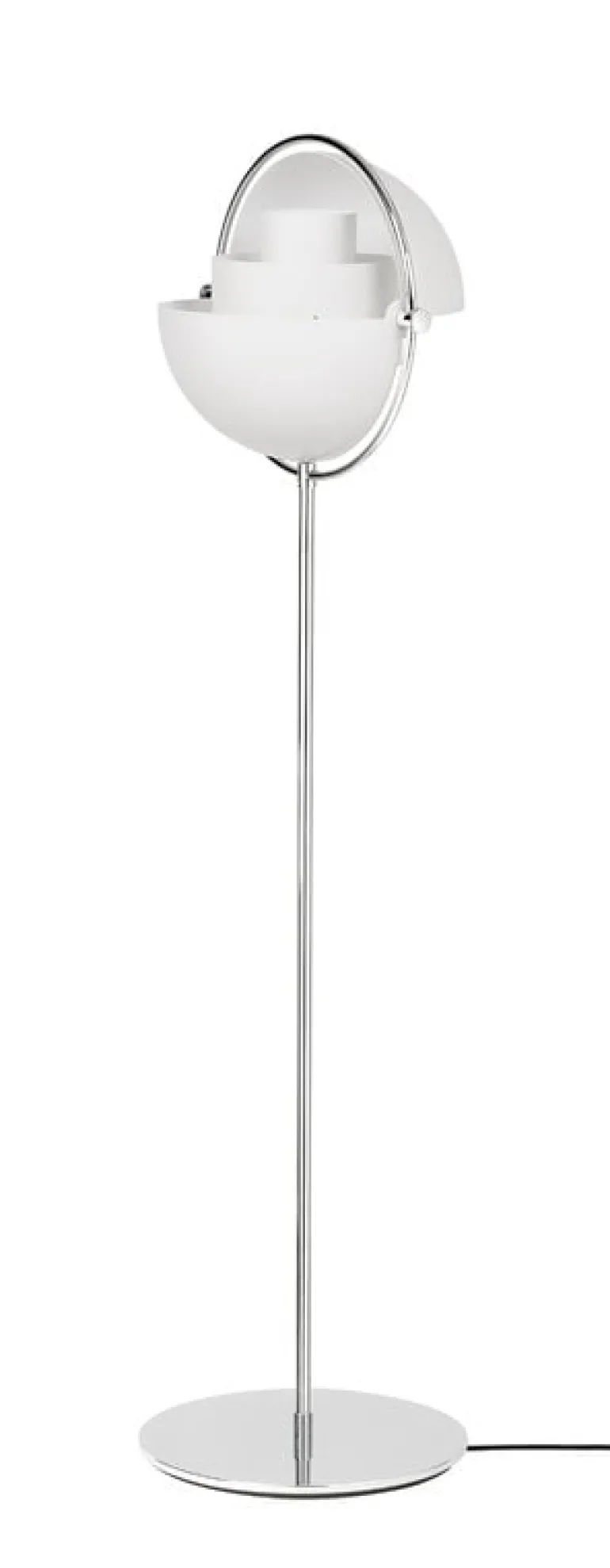 Gubis Multi-Lite, som designades av Louis Weisdorf år 1972, är en elegant golvlampa som leker med geometriska former. Som namnet antyder har lampan flera användningsområden och inställningsmöjligheter: genom att vrida de två skärmarna runt den cylinderformade mittdelen kan ljuset riktas uppåt, neråt och åt sidan. Multi-Lite tillverkades ursprungligen av danska Lyfa och har en tidlös och skulptural metalldesign som är ett djärvt tillägg till många typer av interiörer.