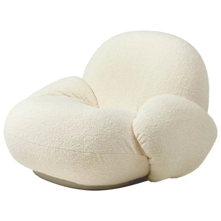 GUBI:s fåtölj Pacha är en förtjusande designklassiker från 1975, designad av Pierre Paulin. Paulin var en pionjär inom låga möbler utan ben – hans mål var att föra människor närmare golvet och utnyttja golvytan på nya, mångsidiga sätt.