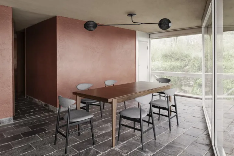 Vägglampan Satellite, från Gubi, är baserad på Mathieu Matégots design från 1953. De två lanterna-liknande lampskärmarna är en applikation av Rigitulle, en teknik och ett material som uppfunnits av den franske designern själv: en metallplåt böjs och viks för att bilda en avlång form. Den perforerade och veckade metallskärmen skapar en illusion av mjukt tyg och filtrerar ljuset på ett underbart, festligt sätt. De långa metallarmarna ger vägglampan ett luftigt och distinkt utseende.