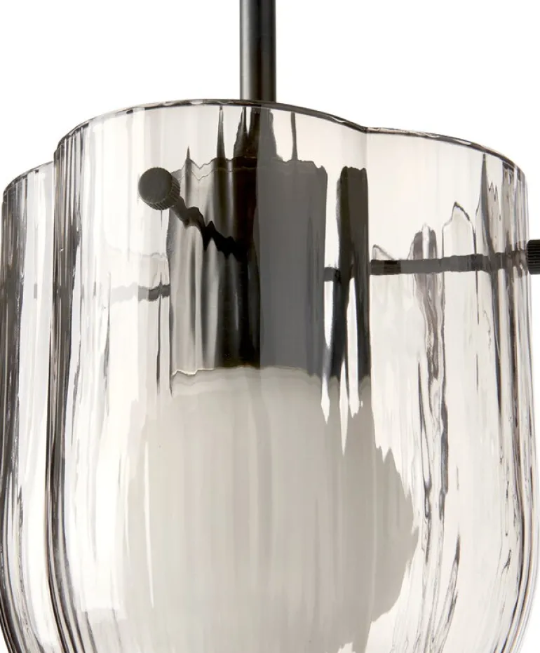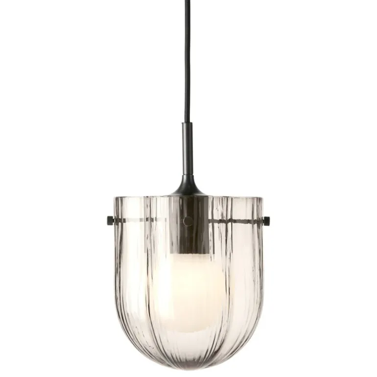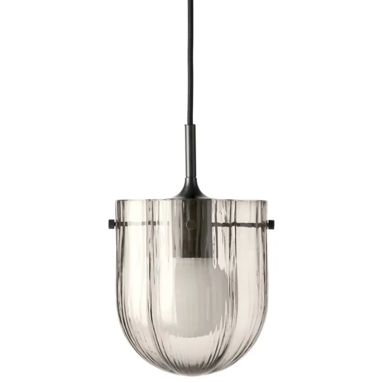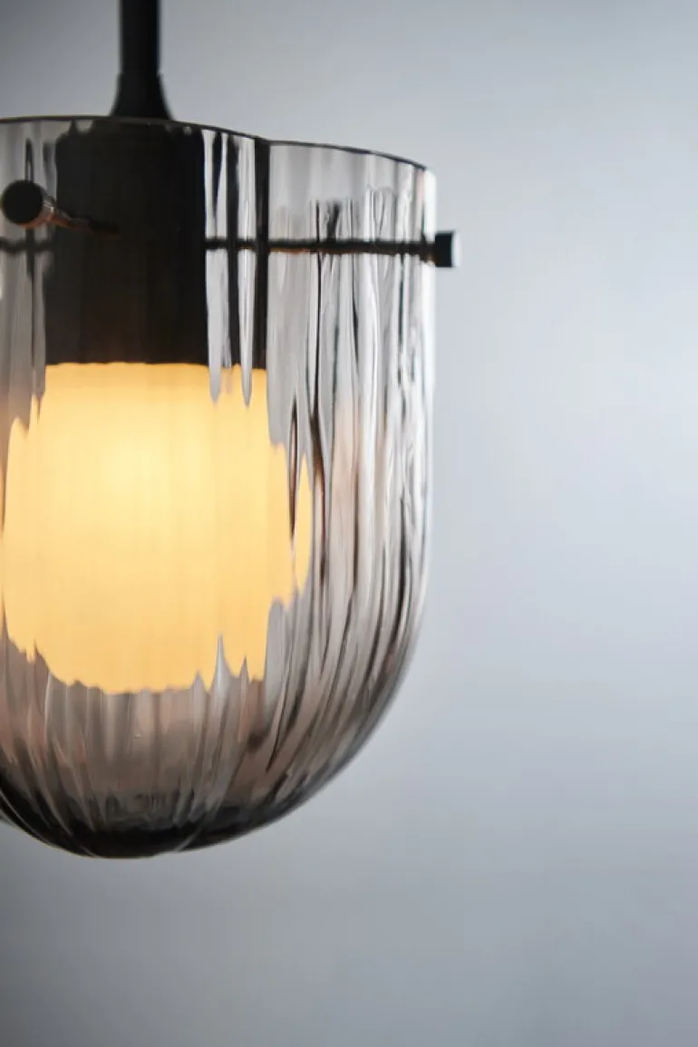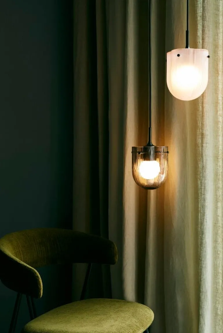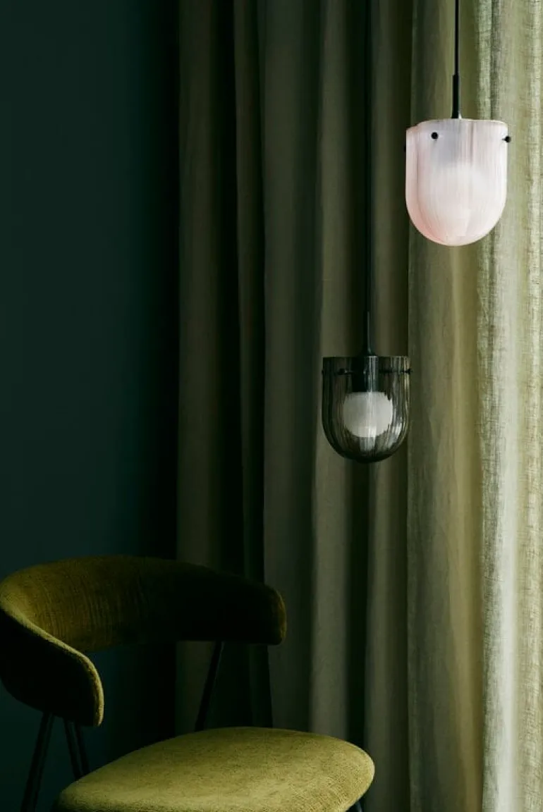 Pendellampan Seine från GUBI för tankarna till flodbanken i Paris. Lampan Seine, som är formgiven av Space Copenhagen, har en kupol av böljande glas med inspiration från lekande ljus och flödande vatten. Den klöverformade glasskärmen har en genomskinlig, rökfärgad yta som hintar om lampans inre. Skärmen tillverkas för hand genom att blåsa glas i en form. Lampans kropp är tillverkad i mörk antik mässing och den dimbara ljuskällan ligger inuti en mindre, rund glaskula.