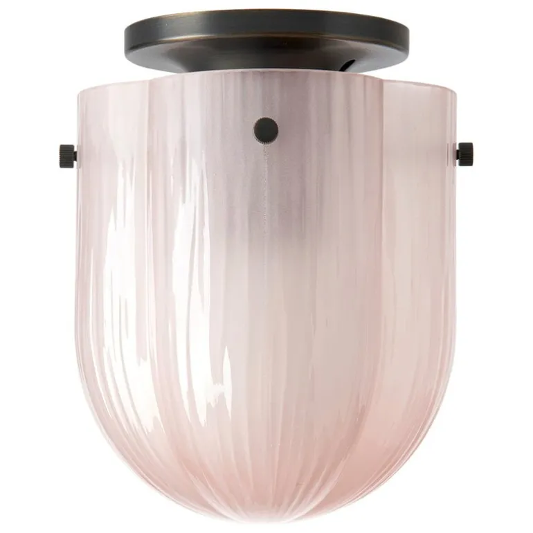 Taklampan Seine från GUBI för tankarna till flodbanken i Paris. Lampan Seine, som är formgiven av Space Copenhagen, har en kupol av böljande glas med inspiration från lekande ljus och flödande vatten. Den klöverformade glasskärmen tillverkas för hand genom att blåsa glas in i en form. Skärmen har en sandblästrad, korallfärgad yta som ger ett mjukt och lite suddigt ljus. Lampans kropp är tillverkad i mörk antik mässing och den dimbara ljuskällan ligger inuti en mindre, rund glaskula.