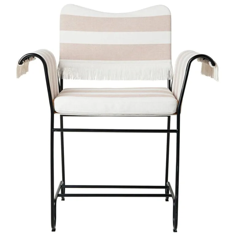 Utomhusstolen Tropique från GUBI utstrålar glamour och lyx som andas svunna tider. Utestolen, formgiven 1951 av Mathieu Matégot, består av en smäcker, lekfullt böjd metallram och kvalitetsklädsel för både inomhus- och utomhusbruk, som kompletterats med dekorativa fransar. En smärre avvikelse från Matégots ursprungsdesign är att klädseln går att byta, vilket förlänger stolens livslängd ytterligare.