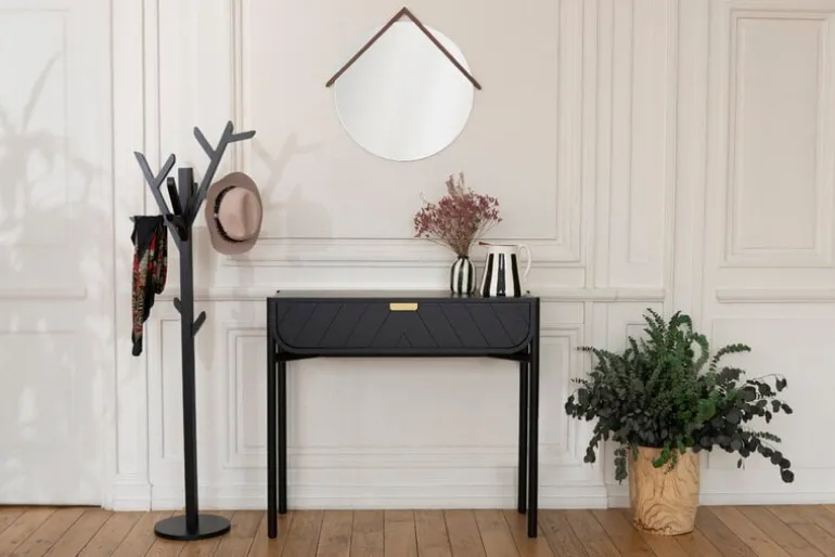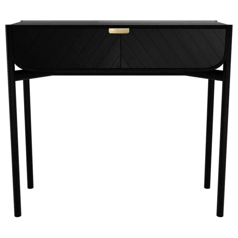 Hartôs konsolbord Marius är formgivet av Pierre-François Dubois och är en elegant möbel som passar i olika slags rum, bostäder och offentliga utrymmen. Formen på konsolbordet är inspirerad av det marina livet genom att anspela på skrovet på ett fartyg, samtidigt som utsmyckningarna på lådan refererar till seglen. Marius är tillverkad i svart ek och passar utmärkt som sidobord i hallen eller vardagsrummet, och fungerar dessutom fint som sminkbord i sovrummet. Mässingsdetaljerna sätter pricken över i på det här eleganta valnötsbordet.