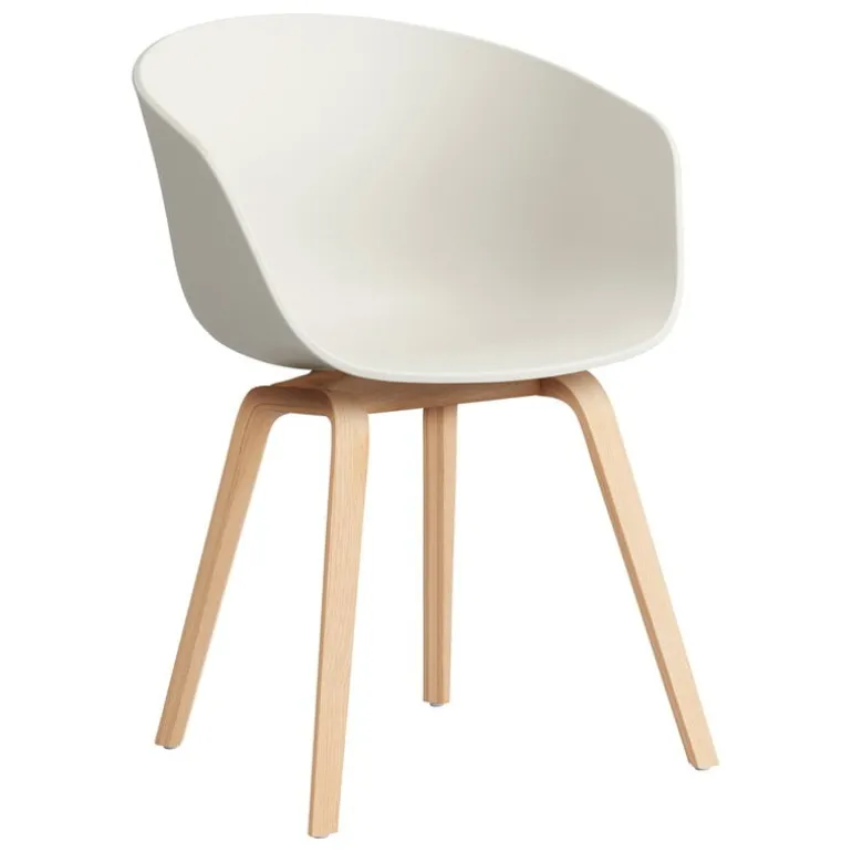 About A Chair AAC22 ingår i HAY:s About A-kollektion och har skapats i nära samarbete med formgivaren Hee Welling. Kollektionen består av stilrena stolar som är enkla att kombinera. Stolens strömlinjeformade sits är gjord av återvunnen polypropen, medan dess träram av ek har ytbehandlats med såpa. År 2023 uppdaterade HAY hela About A-kollektionen med skal av 100 % plast som återvunnits efter konsumtion.