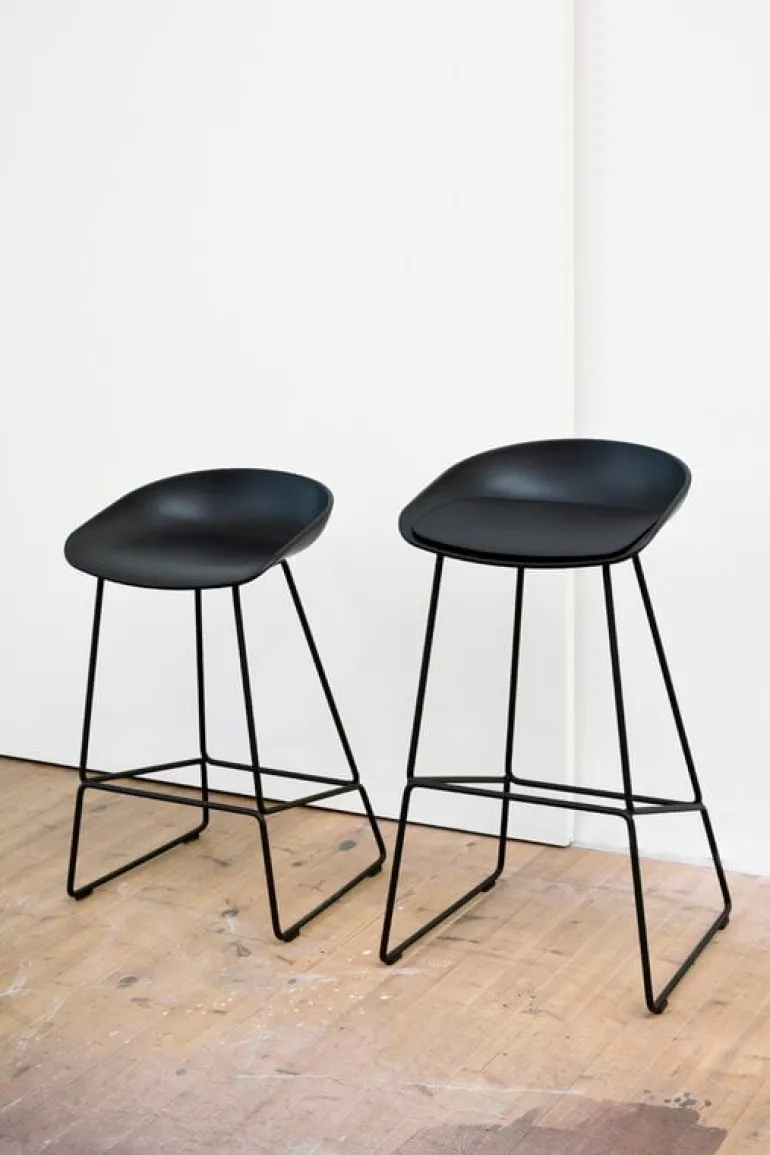 About A Stool-barstolen AAS38 ingår i HAY:s About A-kollektion med stilrena stolar som är enkla att kombinera, skapad i samarbete med formgivaren Hee Welling. Barstolen består av en elegant metallram kombinerat med en strömlinjeformad sits i polypropen. I 2.0-versionen är sitsen framställd av återvunnen plast; år 2023 uppdaterade HAY hela About A-kollektionen med sitsar gjorda av 100 % plast som återvunnits efter konsumtion.