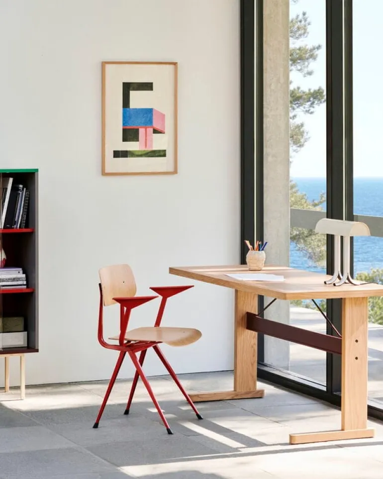 Formen på HAY:s Anagram bordslampa är både igenkännbar och överraskande på samma gång. Dess långa, böjda skärm och glansiga yta påminner betraktaren om läslamporna som är bekanta från banker och bibliotek. Men Anagrams två stiliga aluminiumben uppdaterar den klassiska lampdesignen med en modern twist. Designad av Sam Weller, är bordslampan perfekt för hemmakontoret, sovrummet eller vardagsrummet för att ljusa upp inredningen – och självklart är den också ett utmärkt val för banker och bibliotek!
