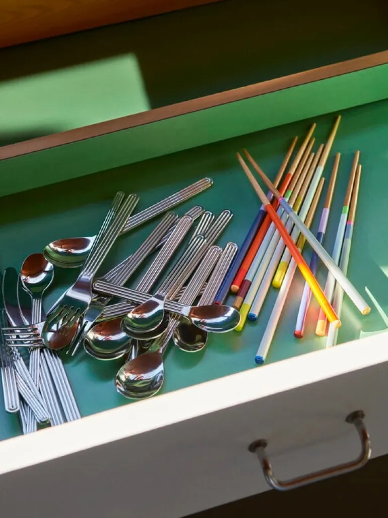 Ätpinnarna Colour från HAY kännetecknas av sina block med livfulla färger, formgivna av den nederländska duon Scholten & Baijings. Ätpinnarna är tillverkade i bambu och bok och håller hög kvalitet, och med dem kan du sätta extra färg på dukningen till dina asiatiska maträtter. Ett paket innehåller fyra uppsättningar ätpinnar.