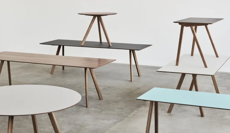 Bordet Copenhague CPH30 från Hay ingår i möbelkollektionen Copenhague, designad av Ronan och Erwan Bouroullec. Det stora bordet passar lika bra som matbord som skrivbord och har en sammetslen linoleumskiva – det porösa materialet har en behaglig känsla och utvecklar en patina över tid.