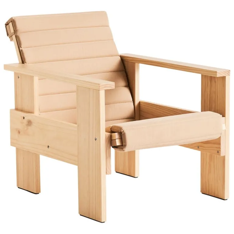 Utomhusstolen Crate är baserad på den ursprungliga Crate-stolen som designades av den nederländska arkitekten och designern Gerrit Thomas Rietveld år 1934. På den tiden tillverkades stolen av överblivna fraktlådor i trä, men i Rietveld Originals och HAY:s nytolkning används istället lackad furu. Fåtöljen Crate har en väderbeständig beläggning, vilket gör den perfekt som utestol på altanen, balkongen eller i trädgården.
