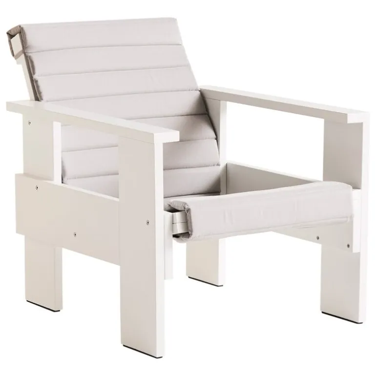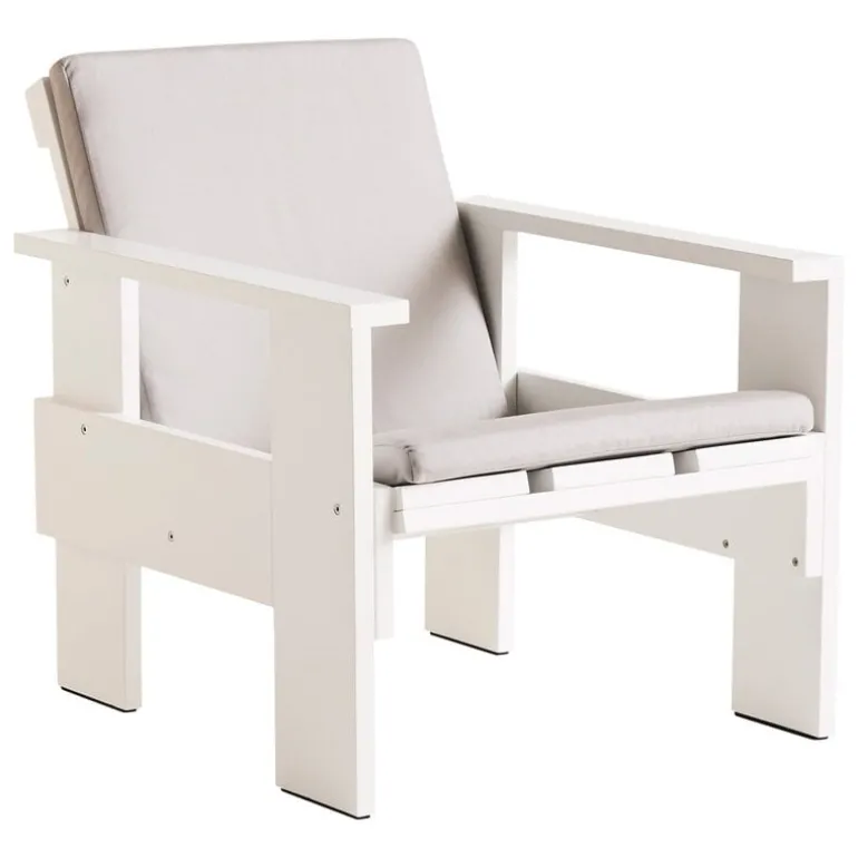 Utomhusstolen Crate är baserad på den ursprungliga Crate-stolen som designades av den nederländska arkitekten och designern Gerrit Thomas Rietveld år 1934. På den tiden tillverkades stolen av överblivna fraktlådor i trä, men i Rietveld Originals och HAY:s nytolkning används istället lackad furu. Fåtöljen Crate har en väderbeständig beläggning, vilket gör den perfekt som utestol på altanen, balkongen eller i trädgården.