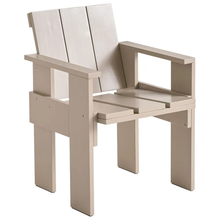Utomhusstolen Crate är baserad på den ursprungliga Crate-stolen som designades av den nederländska arkitekten och designern Gerrit Thomas Rietveld år 1934. På den tiden tillverkades stolen av överblivna fraktlådor i trä, men i Rietveld Originals och HAY:s nytolkning används istället lackad furu. Matstolen Crate har en väderbeständig beläggning, vilket gör den perfekt som utestol på altanen, balkongen eller i trädgården.