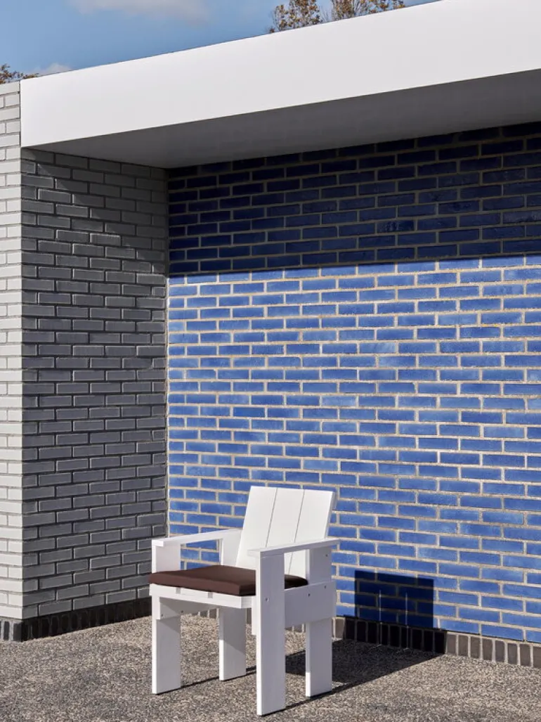 Utomhusstolen Crate är baserad på den ursprungliga Crate-stolen som designades av den nederländska arkitekten och designern Gerrit Thomas Rietveld år 1934. På den tiden tillverkades stolen av överblivna fraktlådor i trä, men i Rietveld Originals och HAY:s nytolkning används istället lackad furu. Matstolen Crate har en väderbeständig beläggning, vilket gör den perfekt som utestol på altanen, balkongen eller i trädgården.