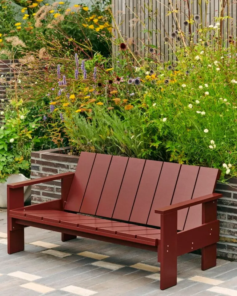 Den första Crate-möbeln skapades av den nederländske arkitekten och formgivaren Gerrit Thomas Rietveld år 1934. På den tiden tillverkades möbeln av överblivet trä från packlårar – därav kollektions namn ”Crate”. Idag använder Rietveld Originals och HAY lackad furu som material. Crate-soffan har ytbehandlats med en väderbeständig beläggning, som gör att den passar perfekt i alla slags utemiljöer, som på terrassen, i trädgården och på balkongen.