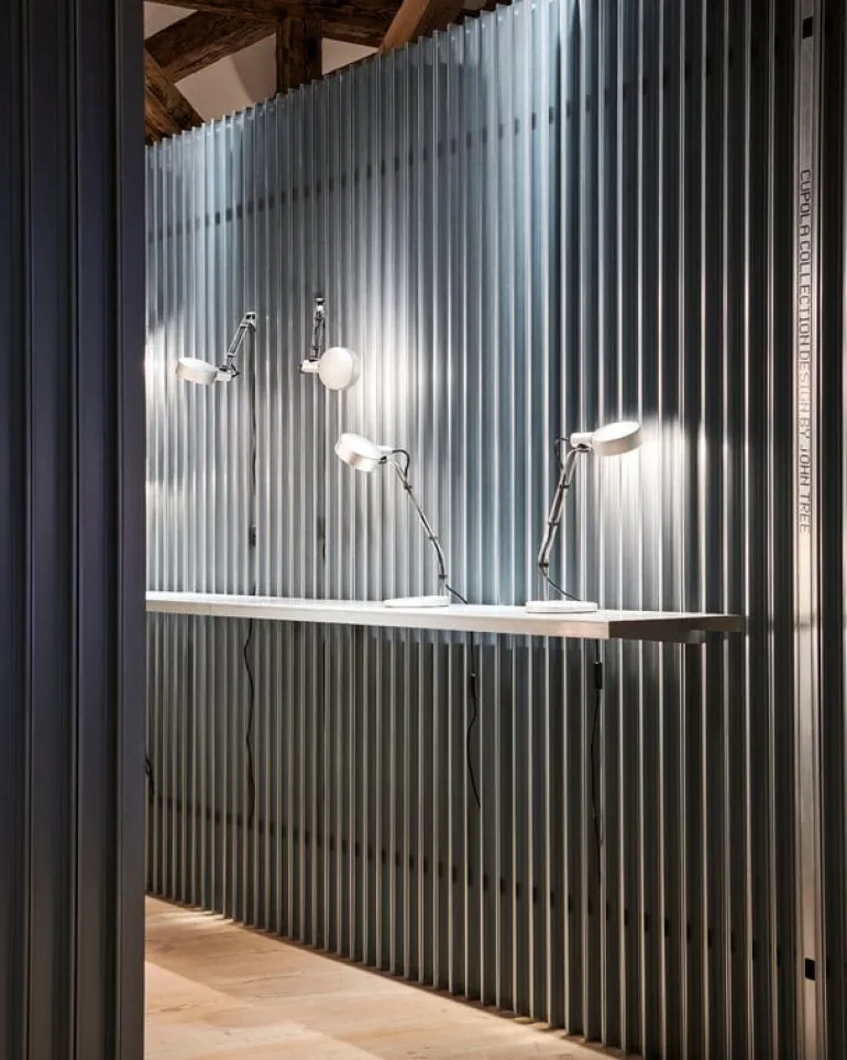 HAY:s vägglampa Cupola, som designats av John Tree, är en mångsidig och kompakt lampa som enkelt kan placeras på vilken vägg som helst. Vägglampan är avsedd att användas med en E14-lampa och har en rund, justerbar skärm med ett vridbar fäste som gör att du kan rikta ljuset i valfri riktning med en vinkel på 360 grader. Cupola-lampan är perfekt som läs- eller arbetslampa, och dess anodiserade aluminiumkropp och minimalistiska design ger en industriell touch till alla utrymmen, som mjukas upp av de rundade formerna.