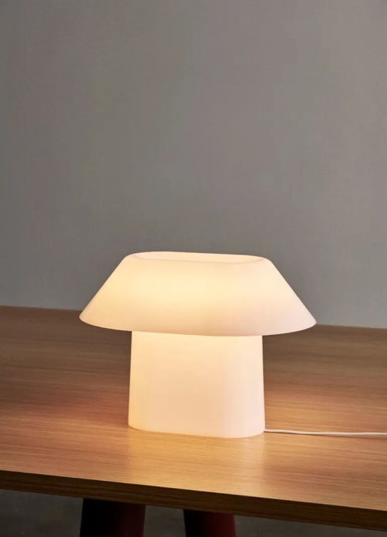 HAY:s bordslampa Drome avger ett jämnt, mjukt sken som sträcker sig från lampskärmens topp ner till dess bas. Lampan, som är designad av Christian Juhl, har en elliptisk form, vilket gör att dess utseende och form förändras subtilt beroende på betraktningsvinkeln.