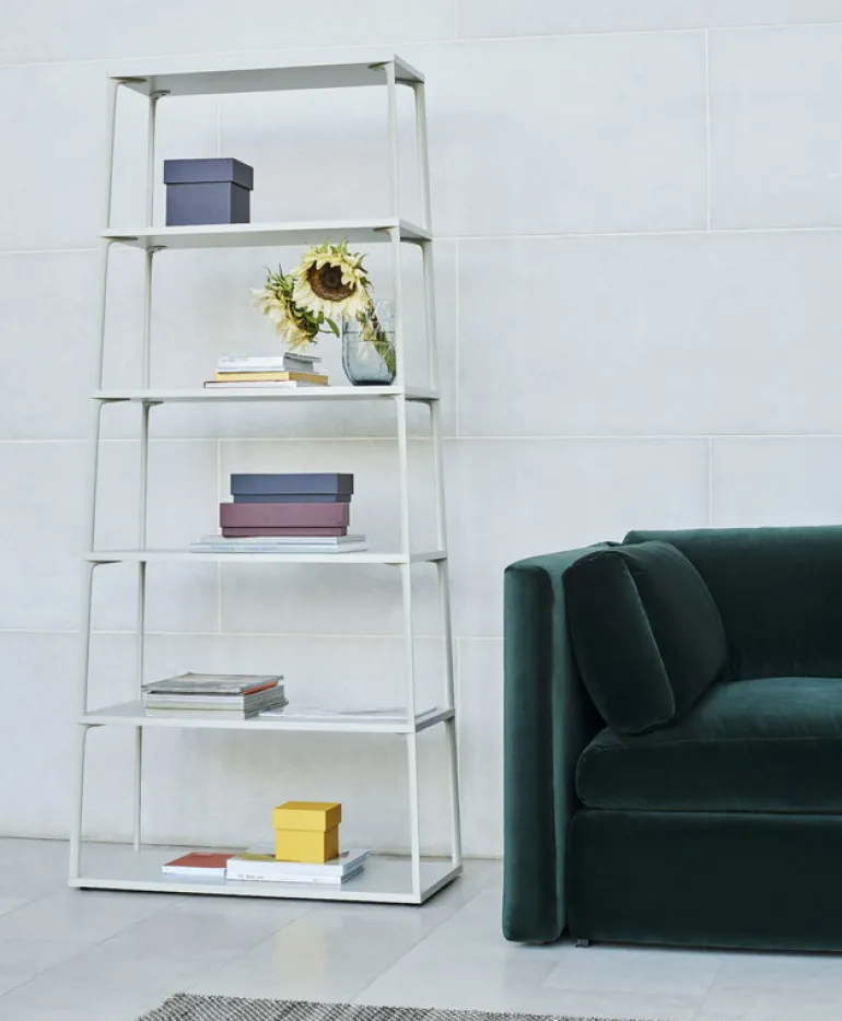 Eiffel-hyllan, som har formgivits av Line Depping och Jakob Jørgensen för Hay, ingår i en multifunktionell möbelkollektion som är baserad på en enkel lagerprincip. I Eiffels hyllor och bord har benmoduler i aluminium sammanförts med pulverlackerade MDF:er, som har kapats i olika geometriska former. De lätta, karakteristiska möblerna i Eiffel-kollektionen för med sig en touch dansk funktionalism och minimalism till skilda privata och offentliga sammanhang, och de olika delarna i kollektionen går perfekt ihop med varandra.