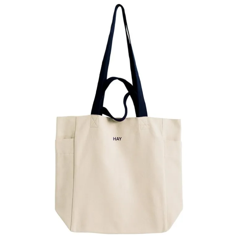 HAY:s toteväska Everyday är en lättsam följeslagare att ha med på sommarutflykterna till stranden eller när du ska handla mat. Den stora kanvasväskan är försedd med en smart ficka på vardera sida och en på insidan för att hålla små saker lätt tillgängliga. De två uppsättningarna handtag i olika längd ser till att Everyday blir enkel att ta med – häng väskan över axeln eller bara greppa handtagen på väg ut. Bomullsväskan Everyday har försetts med HAY:s logo och är perfekt till att hålla ordning på saker – du kan exempelvis använda den som tvättpåse eller förvara barnens leksaker i den.